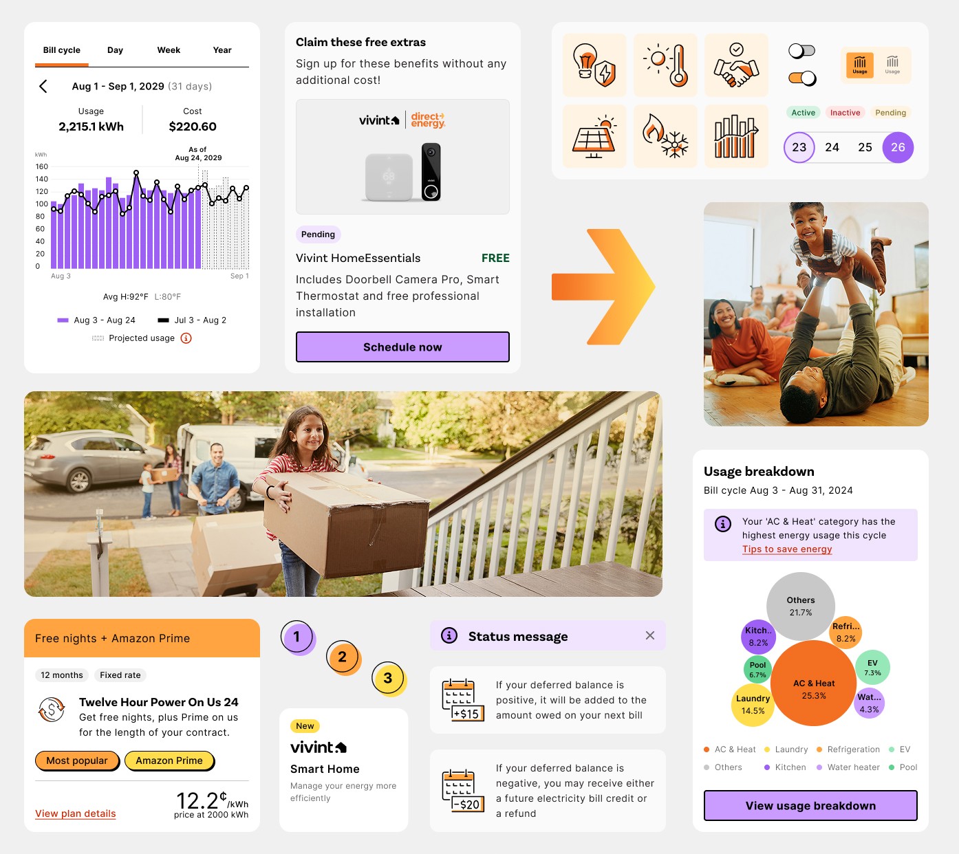 Direct Energy, a leading electricity and natural gas provider across North America, underwent a comprehensive rebranding initiative that began with marketing and expanded across all product touchpoints. Over two years, we reimagined the entire digital experience, transforming a fragmented legacy app into a cohesive, modern platform that empowers customers to take control of their energy consumption.