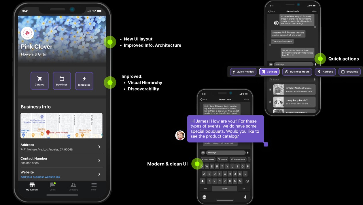 Transforming a confusing, inconsistent B2C messaging app into an intuitive platform that empowers small businesses to thrive digitally.